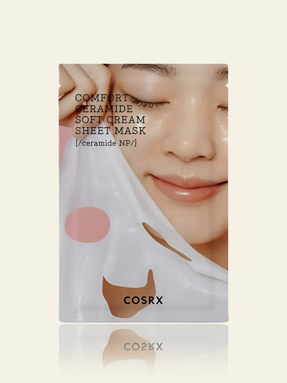 Soft cream sheet mask that melts a highly concentrated ceramide essence into a cream form to help moisturize fragile skin and strengthen skin barrier.